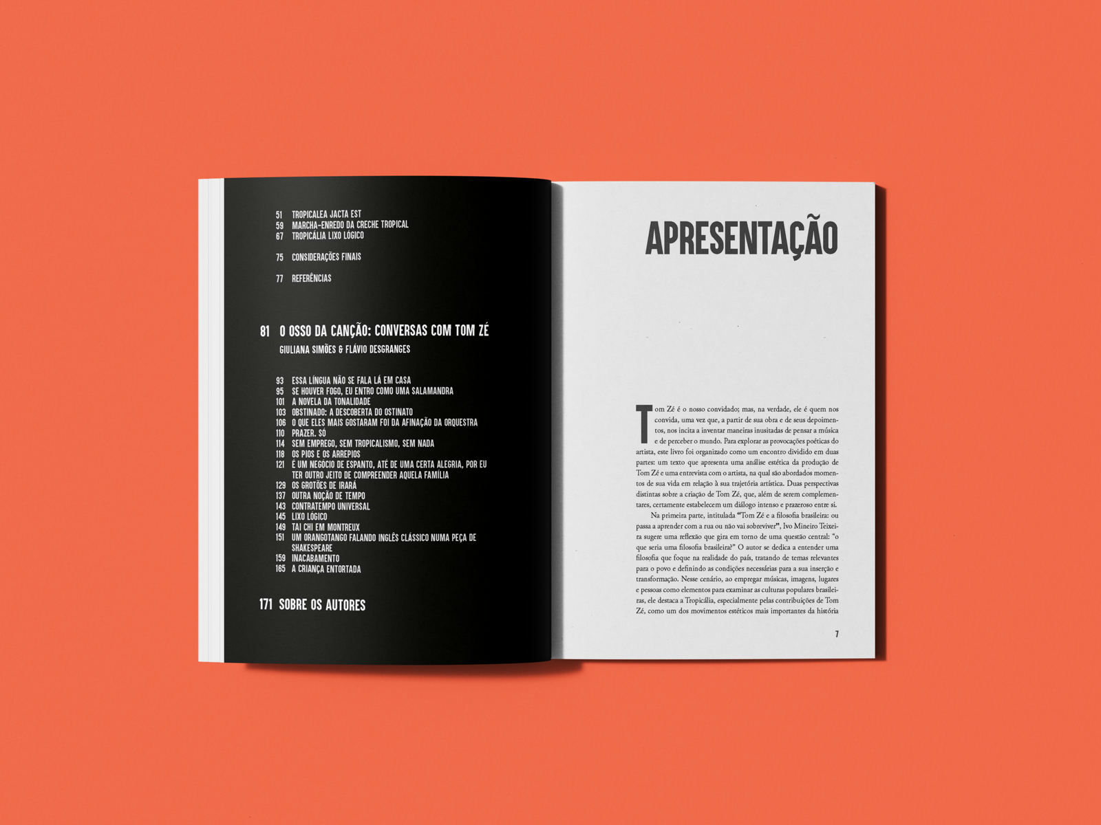 Flávio Desgranges tem desfrutado ao longo dos anos de encontros e diálogos prazerosos com Tom Zé. Em meio a tanta admiração, surgiu a ideia de organizar, gravar e publicar essas conversas, proposta que Tom Zé gentilmente aceitou. Atualmente, é professor do Departamento de Artes Cênicas da Universidade do Estado de Santa Catarina (UDESC) e atua como professor colaborador na Pós-Graduação em Artes Cênicas da Universidade de São Paulo (USP).