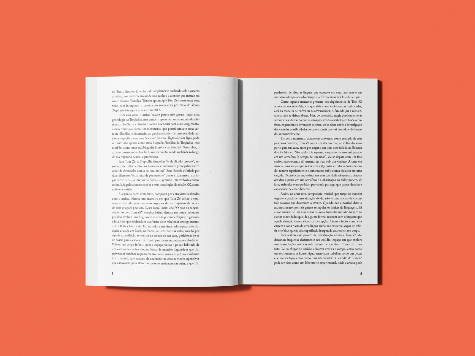 Na primeira parte, intitulada “Tom Zé e a filosofia brasileira: ou passa a aprender com a rua ou não vai sobreviver”, Ivo Mineiro Teixeira sugere uma reflexão que gira em torno de uma questão central: “o que seria uma filosofia brasileira?” Ivo se dedica a entender uma filosofia que foque na realidade do país, tratando de temas relevantes para o povo e definindo as condições necessárias para a sua inserção e transformação. Nesse cenário, ao empregar músicas, imagens, lugares e pessoas como elementos para examinar as culturas populares brasileiras ele destaca a Tropicália, especialmente pelas contribuições de Tom Zé, como um dos movimentos estéticos mais importantes da história do Brasil. Embora já tenha sido amplamente analisado sob o aspecto artístico, esse movimento ainda não ganhou a atenção que merece em sua dimensão filosófica. Teixeira aponta que Tom Zé trouxe uma nova visão para interpretar o movimento tropicalista por meio do álbum Tropicália lixo lógico, lançado em 2012.